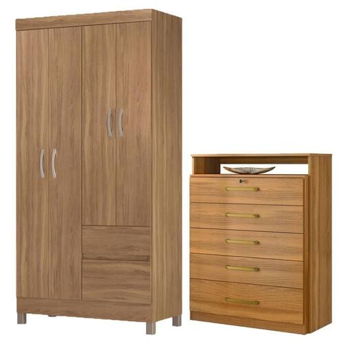 Kit Guarda Roupa Solteiro 4 Portas Lótus Cômoda Triunfo