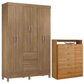 Kit Guarda Roupa Solteiro 6 Portas Flash II Cômoda Triunfo