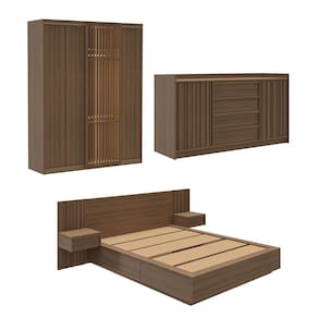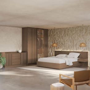 1x Cama Queen/Casal com Cabeceira Ripada e Mesas de Cabeceira Seringal CabeCasa MadeiraOriginals Nogal Largura: 245 cm Altura: 84 cm Peso: 111,6 kg Profundidade: 203 cm Necessita Montagem: Sim