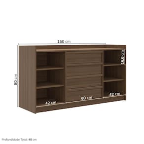 1x Cômoda 2 Portas Ripadas e 4 Gavetas Seringal CabeCasa MadeiraOriginals Nogal Largura: 150 cm Altura: 81,5 cm Peso: 60,3 kg Profundidade: 48 cm Necessita Montagem: Sim