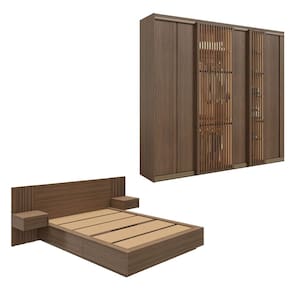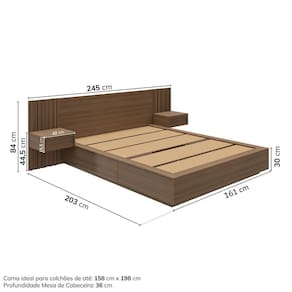 1x Cama Queen/Casal com Cabeceira Ripada e Mesas de Cabeceira Seringal CabeCasa MadeiraOriginals Nogal Largura: 245 cm Altura: 84 cm Peso: 111,6 kg Profundidade: 203 cm Necessita Montagem: Sim