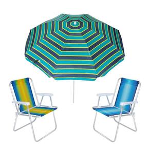 Kit Guarda Sol 1,8m Ipanema Verde 2 Cadeira Alta Alumínio Praia Piscina Camping - Tobee