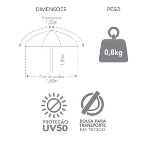 Sua cobertura com fator de proteção solar UV 40 é feita com tecido em Oxford com camada de Silver Coating bloqueando até 97,5% da radiação ultravioleta.