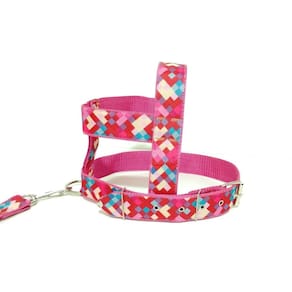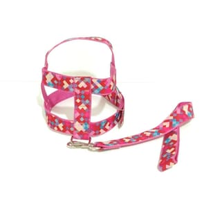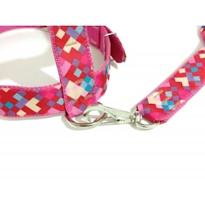 Peitoral de nylon 40 mm xadrez azul e com fivela de metal; Guia de nylon 40 mm xadrez rosa; Mosquetão com trava de segurança; Cor : rosa. Tamanho: nº 9. Praticidade, conforme para seu pet de médio e grande porte. Passei com estilo e elegância. Medidas aproximadas: Pescoço 65 cm. Tórax 63 à 84 cm. Guia 60 cm. Marca: Nica pet Ean: 7435225388801