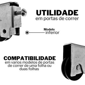 Roldana compatível com a grande maioria das portas de correr de uma ou duas folhas: Machado, Ramassol, Gerotto, CRV, Ferreira, Brasil , Aço Forte etc