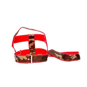 Peitoral de nylon 40 mm camuflado com fita de nylon vermelha e com fivela de metal; Guia de nylon 40 mm xadrez; Mosquetão com trava de segurança; Cor camuflado com fita de nylon em vermelho. Tamanho: nº 9. Praticidade, conforme para seu pet de médio e grande porte. Passei com estilo e elegância. Medidas aproximadas: Pescoço 65 cm. Tórax 63 à 84 cm. Guia 60 cm. Marca: Nica pet Ean: 7430921881663
