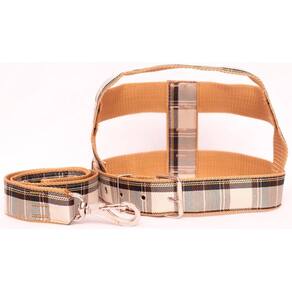 Peitoral de nylon 40 mm xadrez marrom e com fivela de metal; Guia de nylon 40 mm xadrez; Mosquetão com trava de segurança; Cor : marrom. Tamanho: nº 10. Praticidade, conforme para seu pet de médio e grande porte. Passei com estilo e elegância. Medidas aproximadas: Pescoço 69 cm. Tórax 77 à 93 cm. Guia 60 cm. Marca: Nica pet Ean: 7431366650234