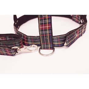 Peitoral de nylon 40 mm xadrez preto e com fivela de metal; Guia de nylon 40 mm xadrez; Mosquetão com trava de segurança; Cor : preto. Tamanho: nº 8. Praticidade, conforme para seu pet de médio e grande porte. Passei com estilo e elegância. Medidas aproximadas: Pescoço 58 cm. Tórax 56 à 74 cm. Guia 60 cm. Marca: Nica pet
