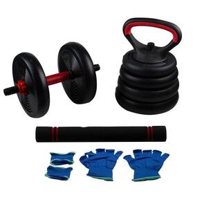 Itens Inclusos: - 2 x Barra roscas com presilhas - 4 x Anilhas 1,25kg - 4 x Anilhas 2kg - 1 x Conector de Barra com Pegada Ergonômica - 2 x Alças de Kettlebell - 1 X Base Para Kettlebell
