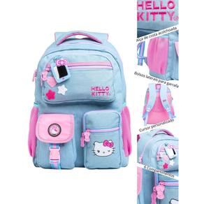 Kit Hello Kitty Jeans Mochila Rodas + Lancheira Térmica