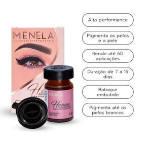Henna para Sobrancelhas Menela Desenvolvida com nanotecnologia, ela pigmenta as camadas mais profundas da pele e dos pelos - até mesmo os brancos - com fixação e intensidade, garantindo um design marcante e duradouro. É referência em performance, rendimento e segurança para quem exige o melhor. Benefícios e características da Henna Menela: Alta pigmentação desde o primeiro minuto Cobre até pelos brancos com intensidade Rendimento superior: até 60 aplicações por pote Duração de até 15 dias na pele Brilho natural e realce do desenho Aplicação rápida: de 1 a 20 minutos Praticidade com batoque integrado Fácil preparo e Dermatologicamente testada e aprovada pela ANVISA Não contém Cinza, amônia, parabenos, peróxido de hidrogênio, iodo nem metais pesados Produto Cruelty Free Tecnologia Avançada com Nanotecnologia: profunda na pele e nos fios Fixação superior, com mais definição e intensidade Liberação inteligente de ativos durante o uso Menor risco de irritação, ideal para peles sensíveis Nutrição dos fios: crescimento fortalecido Textura cremosa para aplicação precisa Resultados mais rápidos e visíveis Fixador com Extrato de Bambu - benefícios exclusivos: Fortalece os fios com sílica natural Estimula o crescimento das sobrancelhas Hidrata e proporciona brilho natural Protege e regenera a pele da região Potencializa a fixação da henna na pele Textura leve e sensação refrescante Prolonga a durabilidade da coloração O que vem no Kit Henna Menela: 1 Henna Menela 2,5g com batoque integrado 1 Fixador com Extrato de Bambu 15ml 1 Pá dosadora/medidora Modo de Preparo e Aplicação: Higienize as sobrancelhas, removendo oleosidade e impurezas. Agite bem o fixador antes de usar. Misture 1 pá de henna com 15 a 25 gotas do fixador até obter a consistência ideal uso de mixer é recomendado . Aplique com pincel apropriado e deixe agir de 1 a 20 minutos. Remova com algodão umedecido em água mineral. Marca: Não Informado Ean: 7891356143670