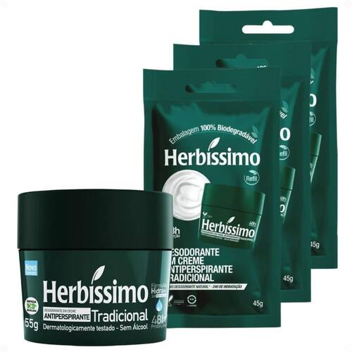 Garanta proteção eficaz e duradoura contra o suor e o mau odor com o Desodorante Em Creme Refil Herbíssimo Tradicional Antiperspirante 45g. Desenvolvido pela tradicional marca HERBISSIMO, este refil é a escolha inteligente para quem busca economia sem abrir mão da qualidade e do cuidado com o meio ambiente. Sinta a confiança de estar protegido o dia todo, com uma fórmula suave que hidrata a pele e evita irritações. Ideal para homens e mulheres que prezam por praticidade e bem-estar, este refil é perfeito para manter a sua rotina de higiene pessoal em dia, com a vantagem de um produto sustentável e econômico.