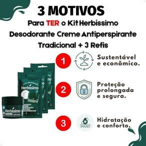 O Desodorante Em Creme Refil Herbíssimo Tradicional Antiperspirante 45g é perfeito para todas as ocasiões: desde o trabalho e a prática de esportes até os momentos de lazer e relaxamento. Leve-o sempre com você na bolsa ou mochila, garantindo proteção e frescor em qualquer situação. Ideal para usar após o banho ou sempre que sentir necessidade de reforçar a proteção contra o odor e a transpiração.