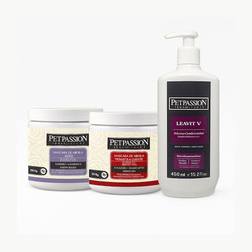 O Kit Hidratação Premium reúne 3 produtos profissionais que reparam, hidratam e revitalizam os pelos de cães e gatos, deixando a pelagem mais saudável, macia e com brilho visível desde as primeiras aplicações.