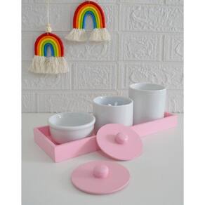 Kit Higiene Bebê Porcelana Tampa Bandeja Mdf Rosa Bancada– Ciranda Arte - Criativa