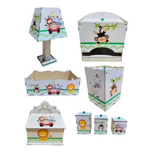 Kit Higiene Bebê Selva Safari 8 Peças Mdf Adesivado Novo
