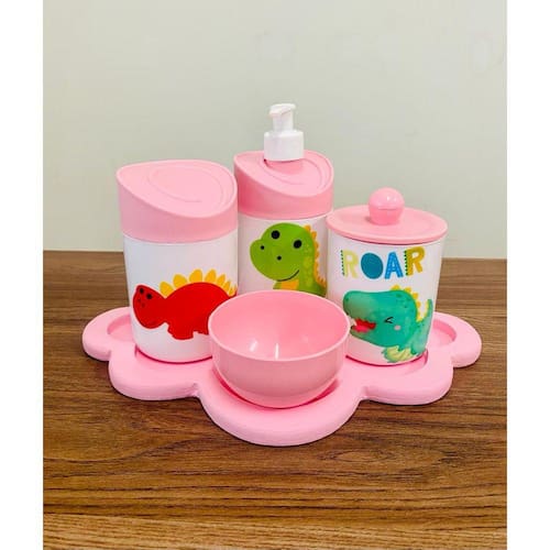Kit Organizador para bebê c/bandeja Cor do Pote: BRANCO PADRÃO MATERIAL DOS POTES: ACRÍLICO MATERIAL DA BANDEJA: MDF Kit acompanha: - 1 bandeja de madeira em MDF - 1 porta sabonete / álcool gel - 1 molheira - 1 porta algodão - 1 porta cotonete MEDIDAS DA BANDEJA EM MDF: Diâmetro: 30x22cm MEDIDA DOS POTES: Porta algodão/cotonete: 8x10,5 cm Porta sabonete líquido: 12x21 cm Molheira: 8x5 cm