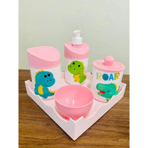 Kit Organizador para bebê c/bandeja Cor dos Potes: BRANCO PADRÃO MATERIAL DOS POTES: ACRÍLICO MATERIAL DA BANDEJA: MDF Kit acompanha: - 1 bandeja de madeira em MDF - 1 porta sabonete / álcool gel - 1 molheira - 1 porta algodão - 1 porta cotonete MEDIDAS DA BANDEJA EM MDF: Diâmetro: 20x20cm MEDIDA DOS POTES: Porta algodão/cotonete: 8x10,5 cm Porta sabonete líquido: 12x21 cm Molheira: 8x5 cm Ean: 7898901266372