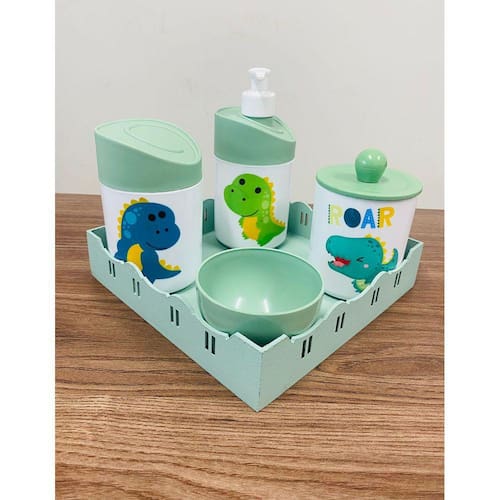 Kit Organizador para bebê c/bandeja Cor dos Potes: BRANCO PADRÃO MATERIAL DOS POTES: ACRÍLICO MATERIAL DA BANDEJA: MDF Kit acompanha: - 1 bandeja de madeira em MDF - 1 porta sabonete / álcool gel - 1 molheira - 1 porta algodão - 1 porta cotonete MEDIDAS DA BANDEJA EM MDF: Diâmetro: 20x20cm MEDIDA DOS POTES: Porta algodão/cotonete: 8x10,5 cm Porta sabonete líquido: 12x21 cm Molheira: 8x5 cm Ean: 7898901200017