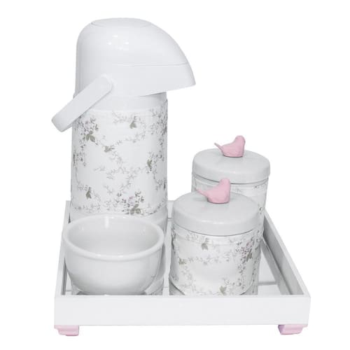 Kit higiene espelho potes garrafa capa passarinho rosa