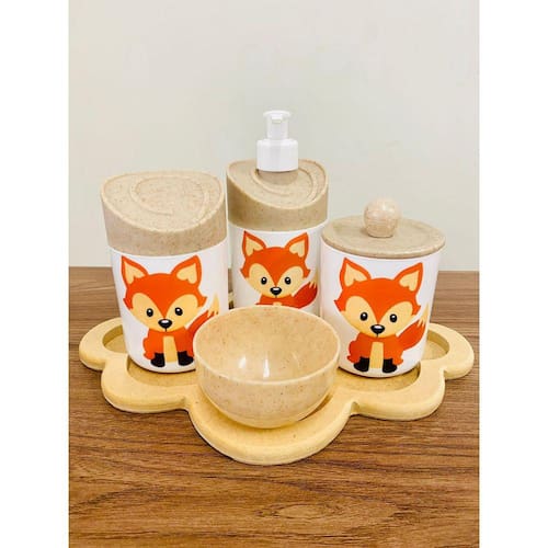 Kit Organizador para bebê c/bandeja Cor do Pote: BRANCO PADRÃO MATERIAL DOS POTES: ACRÍLICO MATERIAL DA BANDEJA: MDF Kit acompanha: - 1 bandeja de madeira em MDF - 1 porta sabonete / álcool gel - 1 molheira - 1 porta algodão - 1 porta cotonete MEDIDAS DA BANDEJA EM MDF: Diâmetro: 30x22cm MEDIDA DOS POTES: Porta algodão/cotonete: 8x10,5 cm Porta sabonete líquido: 12x21 cm Molheira: 8x5 cm