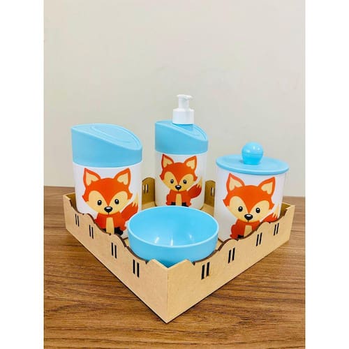 Kit Organizador para bebê c/bandeja Cor dos Potes: BRANCO PADRÃO MATERIAL DOS POTES: ACRÍLICO MATERIAL DA BANDEJA: MDF Kit acompanha: - 1 bandeja de madeira em MDF - 1 porta sabonete / álcool gel - 1 molheira - 1 porta algodão - 1 porta cotonete MEDIDAS DA BANDEJA EM MDF: Diâmetro: 20x20cm MEDIDA DOS POTES: Porta algodão/cotonete: 8x10,5 cm Porta sabonete líquido: 12x21 cm Molheira: 8x5 cm Ean: 7898901271864