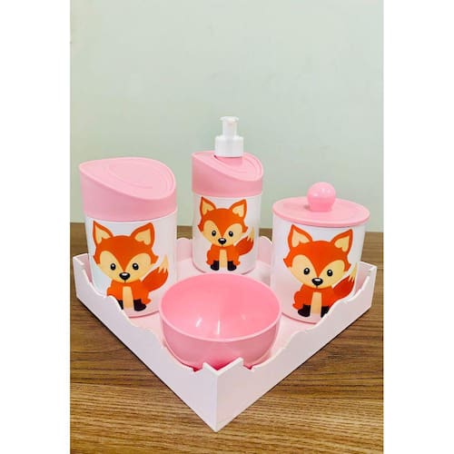 Kit Organizador para bebê c/bandeja Cor dos Potes: BRANCO PADRÃO MATERIAL DOS POTES: ACRÍLICO MATERIAL DA BANDEJA: MDF Kit acompanha: - 1 bandeja de madeira em MDF - 1 porta sabonete / álcool gel - 1 molheira - 1 porta algodão - 1 porta cotonete MEDIDAS DA BANDEJA EM MDF: Diâmetro: 20x20cm MEDIDA DOS POTES: Porta algodão/cotonete: 8x10,5 cm Porta sabonete líquido: 12x21 cm Molheira: 8x5 cm Ean: 7898901263081