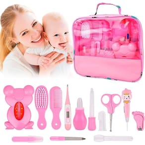 Kit Higiene Rosa Bebê Escova De Dedo Bolsa Pente Detalhes do produto. Kit de cuidados com o bebê de 13 peças, incluindo tesoura recém-nascido, 1 arquivo de unhas, escova recém-nascida, cortadores de unhas, pente recém-nascido, aspirador nasal recém-nascido, termômetro eletrônico, medidor de temperatura da água, equipamento de alimentação design separado , dentes de mascar, escova de dentes de dedo, colher. Jogo seguro do cuidado do bebê: a fim deixar cada bebê obter bom aliciamento e saúde, nós projetamos este jogo do aliciamento. O kit usa materiais de alta qualidade e seguros para garantir que não contenha bpa e pode ser com segurança para garantir aos pais. Fornecer o melhor cuidado médico para o seu bebê. Portátil e baixo: fácil de transportar, evitar a perda, manter limpo e saudável a qualquer hora e em qualquer lugar, é um presente ideal para recém-nascidos. Conjunto de 13 peças/conjunto de escova de higiene para cuidados com a cabeça do bebê recém-nascido e com as unhas, saúde infantil e termômetro. Bem-vindo à nossa loja Youtop. O conjunto de higiene e cuidados com o bebê vem com um pequeno estojo de transporte para manter tudo organizado e fácil de usar. As estampas temáticas na bolsa tornam tudo mais divertido e alegre. A mala tem um forro transparente para que você possa ver facilmente o conteúdo sem abrir a mala. A parte superior da mala tem uma alça de mão para facilitar o transporte. Características. Produtos de cuidados com o bebê completos, divertidos e práticos Estilo bonito, perfeito para bebês, sem medo de arranhar o bebê com objetos grandes Fácil de transportar, especialmente adequado para viagens. Também é uma boa opção para presentear Especificações do produto Material: bolsa, plástico, aço inoxidável O kit inclui Quantidade: 13 peças/1 conjunto 1 Bolsa para itens essenciais 1 Cortador de unhas 1 Tesoura adequada para cortar as unhas do bebê 1 Termômetro digital pilhas incluídas , termômetro em graus Fahrenheit 1 1 colher/dispensador/para colocar medicamentos 1 conta-gotas 1 pente 1 limpador de ouvido com brilho de cabelo com baterias 1 escovas 1 aspirador nasal 1 Clipe plástico para curativo no umbigo 1 Escova de dedo 1 espátula/lixa