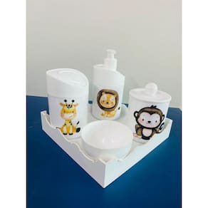 Kit Higiene Safari c/bandeja Color (Leão, Macaco, Girafa)