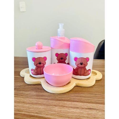 Kit Higiene Ursinha Rosa/BANDEJA NUVEM CRUA