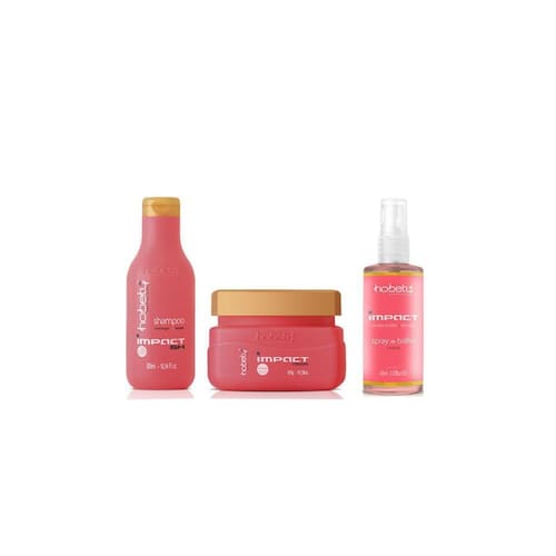 Hobety Kit Impact Hidratação Morango Shampoo+Máscara+Brilho A Linha Impact oferece um alto poder de hidratação com fórmula equilibrada, em poucos minutos devolve a emoliência, brilho e a sedosidade aos cabelos. Conta com uma irresistível fragrância que envolverá seu ambiente.Indicada para cabelos que precisam de alto poder de hidratação conta ainda com a queratina na sua fórmula que contribui para a reparação dos fios que sofreram processos químicos.Modo de uso: Após usar o shampoo Impact aplique a máscara nos cabelos deixando agir por 5 a 10 minutos. Enxague e finalize .01 Shampoo de 300ml01 Máscara de 300g01 Finalizador 60ml