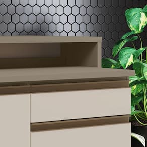 O Kit Ilha Gourmet Connect com Balcões 80cm e 60cm da Móveis Henn é a escolha certa para quem deseja praticidade com um toque de elegância. Com estrutura em MDF e pintura UV, o kit conta com 2 portas com dobradiças metálicas e 3 gavetas com corrediças telescópicas, oferecendo abertura suave e durabilidade. Os puxadores perfil em alumínio na cor bronze e o detalhe ripado na ilha garantem um visual moderno e sofisticado. A ilha possui tampo de 25mm de espessura, e os balcões acompanham tampos em MDP. Os pés em ABS com regulagem de altura completam a funcionalidade com muito estilo.