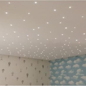 Kit para simulação de estrelas no teto, através do uso da fibra ótica e led, transformando seu ambiente em lugar único. Utilizado como iluminação decorativa, deve ser aplicado em forros e painéis de gesso/madeira ou qualquer outra superfície de fácil furação. Indicado para quarto de bebê, criança ou casal, salas de banho, salas de TV, home theater, hall de entrada, cinema, brinquedoteca, berçário, spa, clínica de estética, hotel, etc. Para a instalação é necessária uma tomada simples plug fêmea comandada por e um vão livre de pelo menos 15cm, por trás da superfície - Que deve estar com pintura/acabamento final pronto não se deve aplicar massa, gesso e/ou lixa sobre a fibra ótica . O custo da instalação não está incluso no valor do kit. O kit é composto por equipamento iluminador, conjunto de cabos de fibra ótica, broca, cola branca, manual do usuário e certificado de . Sendo, o equipamento fabricado em caixa de alumínio com fonte de luz led para efeito de estrelas brilhando; cabeamento com fibra ótica de 0.75mm, cortada e prensada, para evitar erros/falhas na instalação e pontos de luz mais definidos. Este produto é indicado para uma área de 2,0 a 3,5 m2 - Lembre-Se de verificar se o comprimento dos cabos atende às dimensões do ambiente. Especificações Técnicas: - Cor: branco quente - Potência: 5W - Voltagem: bivolt - Comprimento dos cabos: 60 x 1m, 60 x 2m - : 1 ano no equipamento e 10 anos no cabeamento Noite Estrelada® e Inovva Interiores Iluminação® são marcas registradas e de utilização exclusiva.
