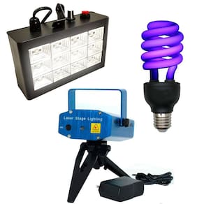 Sua festa vai bombar com este conjunto KIT FESTA. É o mínimo necessário para realizar uma grande festa com incríveis efeitos de luzes, tenha tudo que precisa para criar sua própria balada e ser o DJ destaque da festa, são 3 ótimos produtos exclusivos, práticos e de fácil instalação. Reúna seus amigos e familiares e deixe seu final de semana muito mais divertido. Projetor com efeitos caleidoscópicos e pontilhados nas cores verde vermelho, aproveite esta super oferta.CARACTERÍSTICASStrobo 12 Leds BRANCO com altíssimo brilho e baixo consumo de energia, trabalha com velocidade regulada pela música pois possui sensor de som automático, possui suporte para fixação, é de fácil instalação basta conectar na rede elétrica.Projetor laser com projeções holográficas ativado por som ou strobo modo automático. Corpo fabricado em alumínio escovado com alça para fixação e pintado nas cores preta ou azul. Possui chave seletora automática / sensor de música, controle de velocidade do motor e das piscadas. Acompanha tripé em plástico rígido de alta resistência e com regulagem de ângulo para apoio em diversas superfícies.LAMPADA LUZ NEGRARoca: E-27 (igual das lâmpada comum).Luz negra: 36wVida útil: 6000 horas.Peso: 150 gramas.CONTEÚDO ENVIADO1 Lâmpada luz negra 110v1 Strobo Branco 12 Leds1 Mini Laser Holográfico Ean: 7898970184270