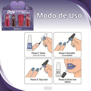 Nome do Produto: Kit Impala Pov 2.3 Maria Nicolly: 2 Esmaltes, 1 Top Coat e 1 Gloss Labial