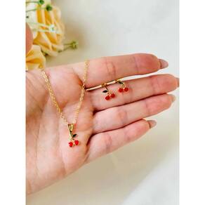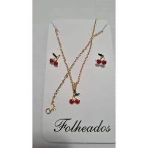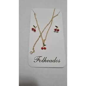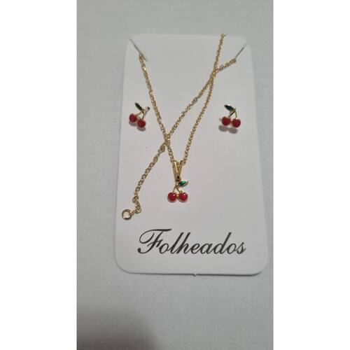 Kit Infantil cerejinha colar e brincos Folheado a Ouro 18K