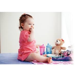 Com formato ergonômico e com desenhos estampados, especialmente criados para incentivar e auxiliar no desenvolvimento das crianças.