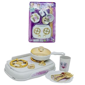 O kit vem com jogo de jantarzinho, jogo de fogão cooktop, liquidificador, panelinha de pressão