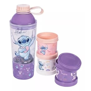 Kit composto por shakeira e conjunto de potes 3 em 1. Acompanha embalagem especial.kit do Stitch é uma excelente opção para presentear quem é apaixonado pelo personagem ou para renovar seus produtos de uso diário.- A shakeira tem capacidade para 600 ml e compartimento rosqueavel na parte inferior para snacks. Super prático e funcional.- Os potes 3 em 1 são ideias para separar os lanchinhos do dia a dia, ou segmentar e setorizar itens pessoais de sua preferência e até proporcionar sua dieta.- Itens colecionáveis.- Atóxicos e livres de bisfenol-A (BPA FREE).- Fabricados em polipropileno (PP).Dimensões (Comp x Larg x Alt): 16,5 x 9,0 x 21,5 cmCódigo: 15634