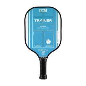 Cada uma das 4 Raquetes de Pickleball JOOLA Essentials 12mm vem com um desenho da quadra de Pickleball em sua superfície jateada com areia. Termos-chave estão incluídos para ajudar a localizar áreas importantes, como a zona de não voleio (kitchen), linha lateral, linha central, além da figura de uma bola de Pickleball para relembrar de qual lado sacar.