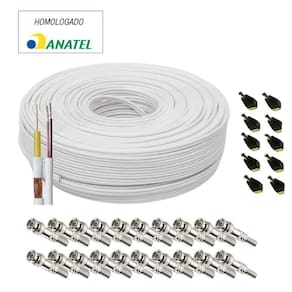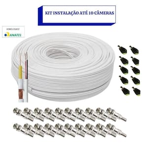 itens inclusos no pacote: 01 rolo 100 metros de cabo coaxial 80% malha 4 mm bipolar - homologado pela anatel 20 conectores bnc com mola; 10 conectores p4 macho com borne. Economize em suas instalações, utilizando nossos kits. Ótimo custo benefício