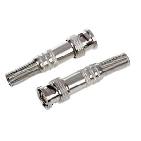 bnc conector para instalação de câmeras de segurança cftv . O conector bnc com mola é o mais utilizado para ligação de câmeras de segurança em cftv. Esse modelo de conector é muito resistente e possui uma mola na entrada do cabo que diminuirá os impactos nas movimentações. A fixação no centro é por parafuso, facilitando assim a sua utilização. Possui um jogo de molas que ajuda a evitar a quebra no cabo da câmera. Descrição:conector plug p4 macho com borne para cftv