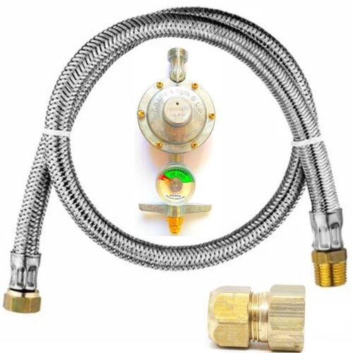 Kit Instalação Gás Mangueira 80Cm Com Manômetro Botijão GlpKit instalação gás mangueira 80cm com manômetro botijão glp Obs: este kit é compatível com qualquer marca e modelo. Obs: antes de efetuar a compra verificar a medida correta para instalação evitando o transtorno da devolução desde já agradecemos... Kit contém: 1- flexível rosca 1/2 tamanho 80cm material borracha nitríca com cobertura trançada metálica conforme norma nbr 14.955 e 13419, pressão de trabalho: 2,0 mpa / 20 bar / 290 psi, pressão de ruptura: 10,0 mpa / 100 bar / 1450 psi, temperatura de trabalho: -20°c à 120°c 1- regulador com manômetro formagás 1 kg/h 2,8 kpa 2°estagio saida 1/2 material zamac validade 5 anos 1- adaptador dako latão femea para flexivel em bico mamadeira dos aparelhos São fornecidos:- anel de vedação em borracha nitrílica nbr ; Obs: instruções de utilização do flexivel de borracha para condução de gases glp/gn conforme a norma nbr 13.419 enbr 14.955 1 os tubos flexiveis só devem ser instalados em aparelhos de queima, com reguadores de pressão, fabricados conforme a norma nbr. 8473; 2 os tubos flexiveis só devem ser instalados em aparelhos que, quando pleno uso, não provoquem no ponto de ligação, ou no ambiente por onde passam,A temperatura superior a 120°c e inferior a -20°c 3 os tubos flexiveis não devem atravessar nem ser embutidos em paredes e pisos; 4 não é permitido efetuar qualquer tipo de inserção ou emenda soldagem ou colagem ; 5 nos pontos de ligações fixar as extremidades somente com conectores e vedações apropriados; 6 o tubo flexivel não deve atravessar por trás de aparelhos de queima; 7 não e permitido o uso de mais de um tubo flexivel ligados em série; 8 o tubo flexivel não deve ser instalado torcido; 9 obedecer ao raio minimo de curvatura adimissivel de 102mm; 10 não apertar excessivamente os terminais roscaveis aperto excessivos podem espanar os terminais ; 11 verificar se há vazamentos antes de ultilizar o fogão, o teste deve ser feito com espuma àgua e sabão ,se houver bolhas é sinal de vazamento. Refaça a instalaçâo; 12 não nos resposabilizamos por má instalação do produto; 13 consulte sempre um tecnico de instalação de gás. Composição do produto: Nbr 13.419- mangueira de borracha nitrilica, capa trançada com fios de aluminio e luva de aperto metalica. Nbr 14.955- mangueira de borracha nitrilica, capa trançada com fios de aluminio, conexões de latão e luva de aperto metalico. Possui certificado de qualidade Obs: guiga gás peças e acessórios fornece toda linha para instalação a gás glp e gn veja todos nossos produtos em mais anuncios do vendedor.