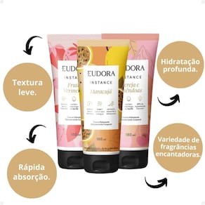 O Kit Instance é uma seleção exclusiva de produtos que garantem não só hidratação e perfumação, mas também momentos de prazer e bem-estar. Ideal para quem deseja se cuidar e sentir-se ainda mais radiante, este kit proporciona uma rotina de autocuidado completa, com fragrâncias irresistíveis e texturas que vão conquistar a sua pele.
