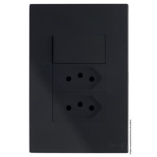 Cj interruptor simples + tomada dupla 10a 4x2 - recta black satin fosco - brs12280-7bk