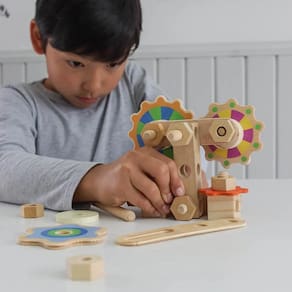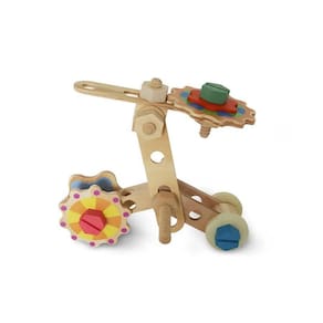 Com as peças de diversos formatos, parafusos e porcas, é possível para a criança criar e recriar máquinas, desenvolvendo a criatividade e a motricidade, não é só o Papai que pode ajudar