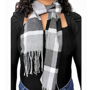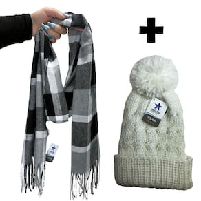 Kit Inverno Cachecol Xadrez Blogueira Touca Pompom Frio - Cinza - Único