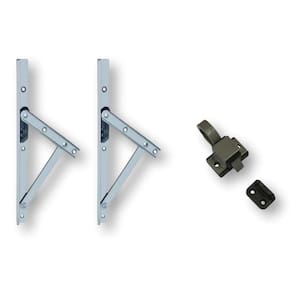 Kit Janela Maxim-ar Braço 20cm + Fecho Gatilho Cinza Kit Janela Maxim-ar Braço 20cm + Fecho Gatilho Cinza - Braço de sobrepor em alumínio para janelas maxim-ar da linha madeira ou alumínio. Produzido com material alta qualidade, possui freio com regulagem, acabamento com pintura eletrostática ( Não enferruja ). Abertura suave e com angulo de até 90. O preço é do PAR. Lado esquerdo e direito.