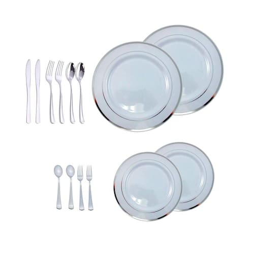 Kit de jantar e sobremesa de Descartáveis de Luxo na Cor Prata para 80 Convidados: Eleve a elegância de suas refeições e celebrações com nosso deslumbrante Kit de Materiais Descartáveis de Luxo em prata. Com 238 peças meticulosamente projetadas, este conjunto transformará suas ocasiões especiais em eventos memoráveis. Pratos Grandes para Refeição 26CM - 84 unidades: Combinação de sofisticação e funcionalidade para servir pratos principais de forma impecável. Pratos Pequenos para Sobremesa 15,5CM - 40 Unidades: Ideais para finalizar suas refeições com doçura, adicionando um toque de glamour a qualquer sobremesa. Pratos Pequenos para Sobremesa 19CM - 42 Unidades: Ideais para finalizar suas refeições com doçura, adicionando um toque de glamour a qualquer sobremesa.