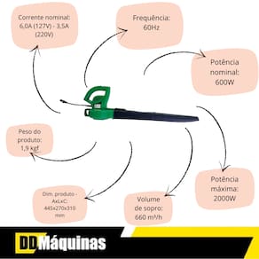 O Soprador de Folhas GSF-2000 é a ferramenta que você sempre sonhou. Com 2000W de potência, ele varre a sujeira mais teimosa e as folhas secas em segundos, sem o esforço de uma vassoura. É como ter o poder do vento na sua mão. Além de ser super potente, ele é leve, e seu tubo desmontável garante que você possa guardá-lo em qualquer cantinho.